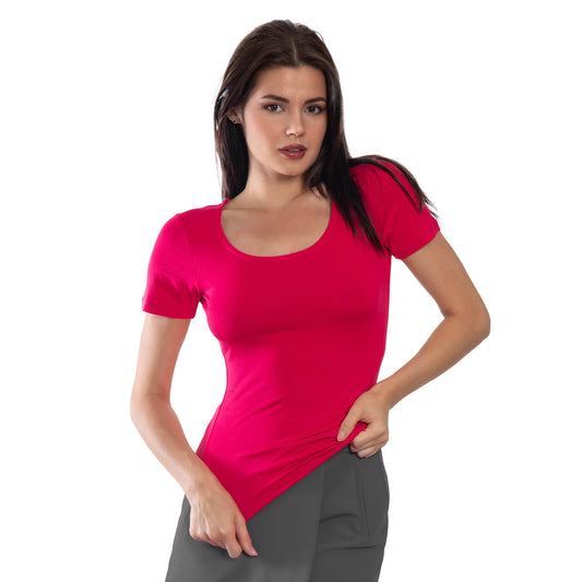 Дамска кроп топ тениска с къс ръкав обло деколте