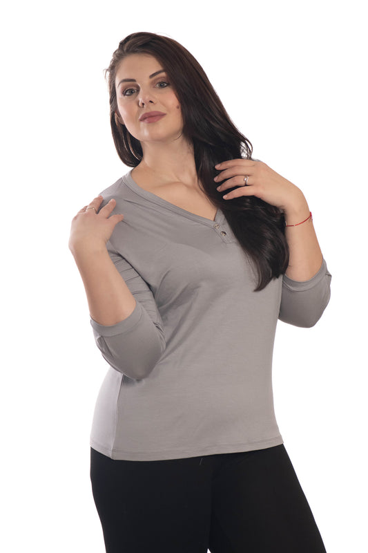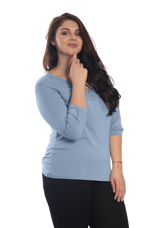 Дамска блуза - тениска с 3/4 ръкав остро деколте с две декоративни копчета за карасота