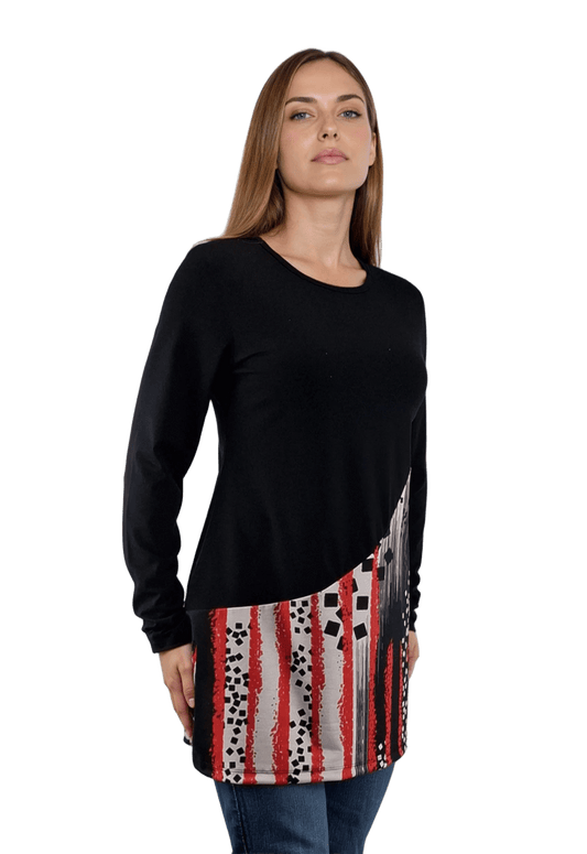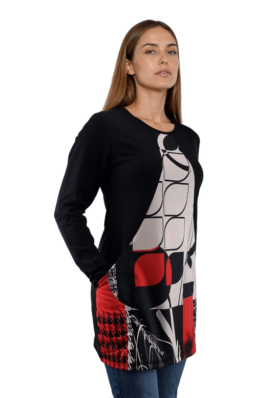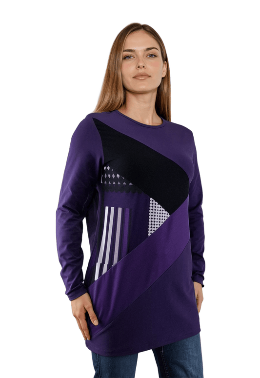 Дамска блуза-туника асиметрична с дълъг ръкав обло деколте