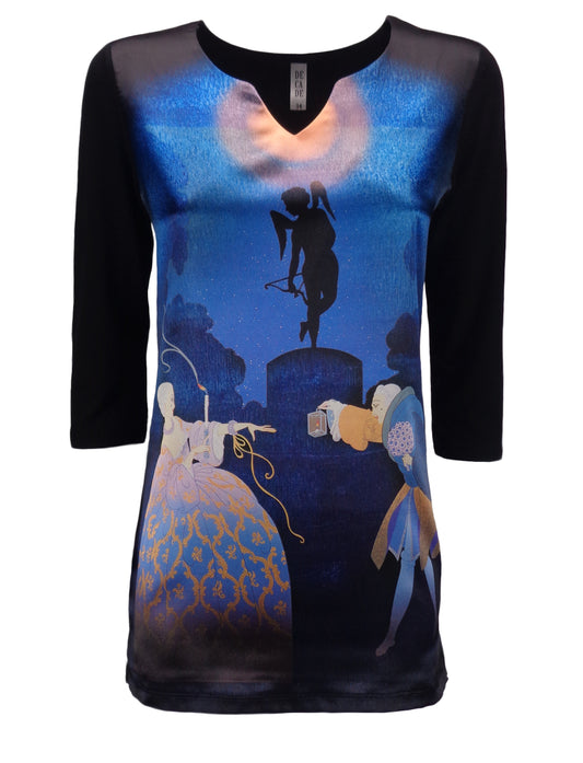 Дамска туника - тениска с 3/4 ръкав остро деколте с копчета