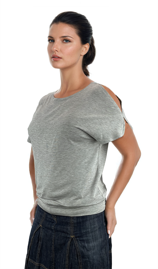 Damenbluse - kurzärmeliges T-Shirt mit Rundhalsausschnitt