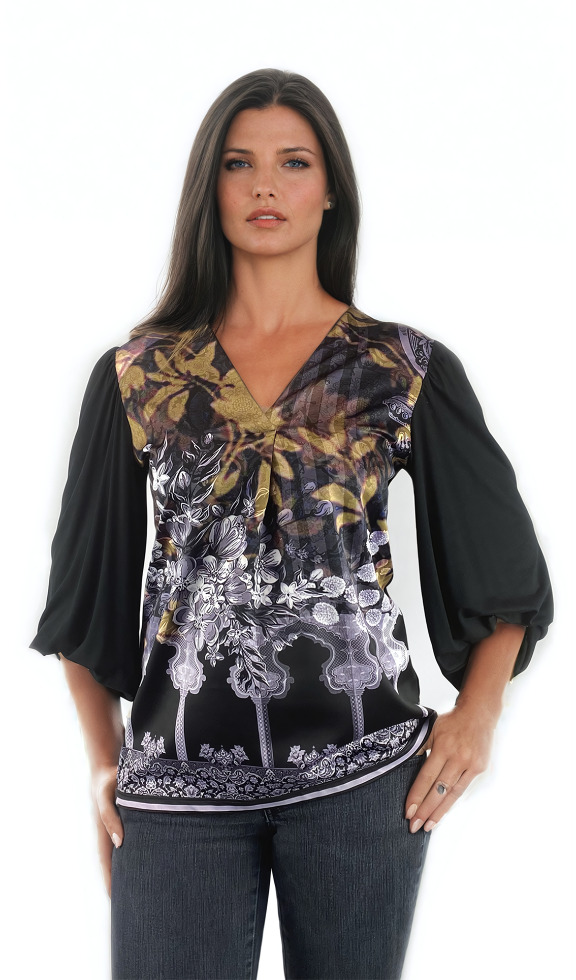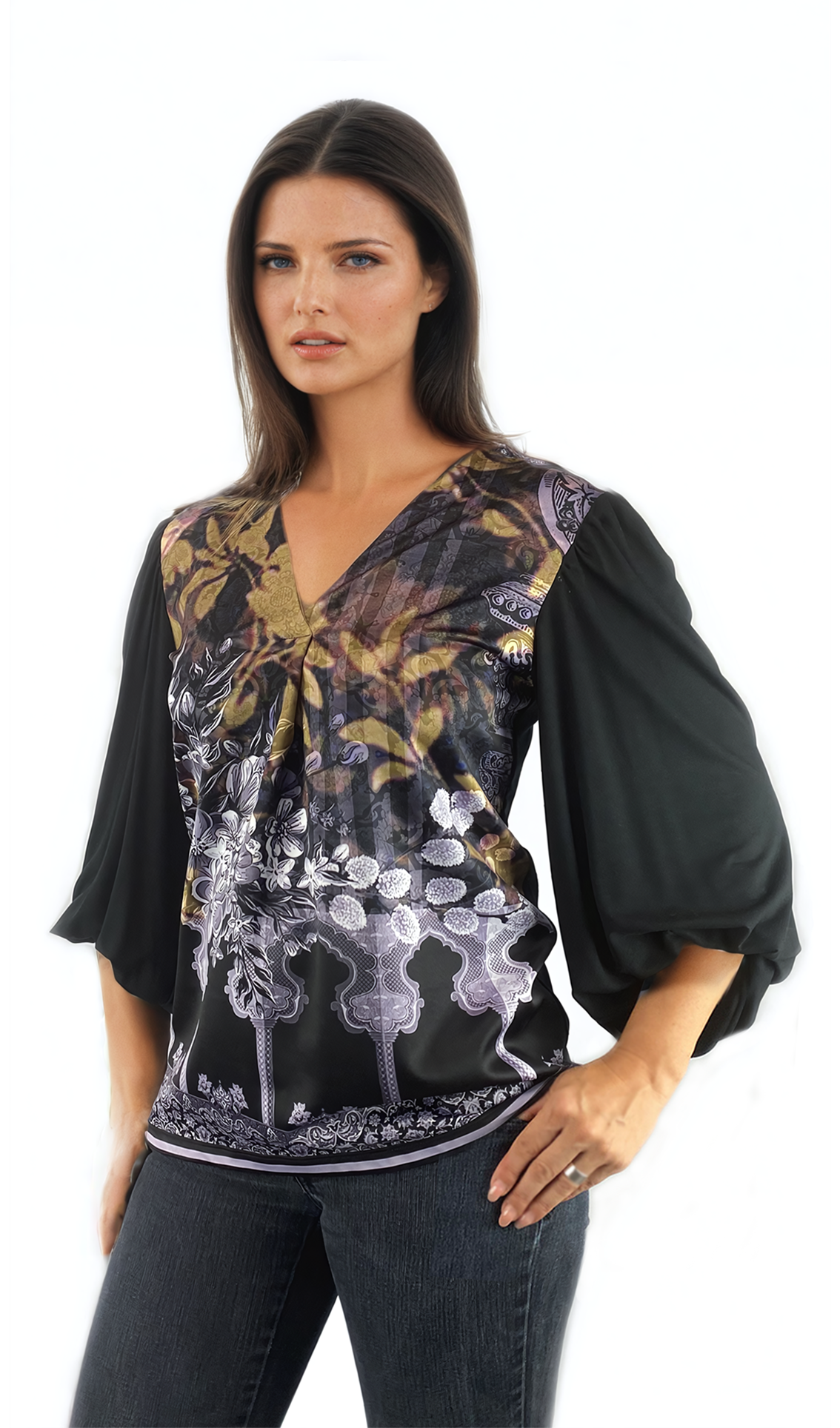 - Дамска блуза - тениска с 3/4 ръкав остро деколте добра основа за всякa визия.