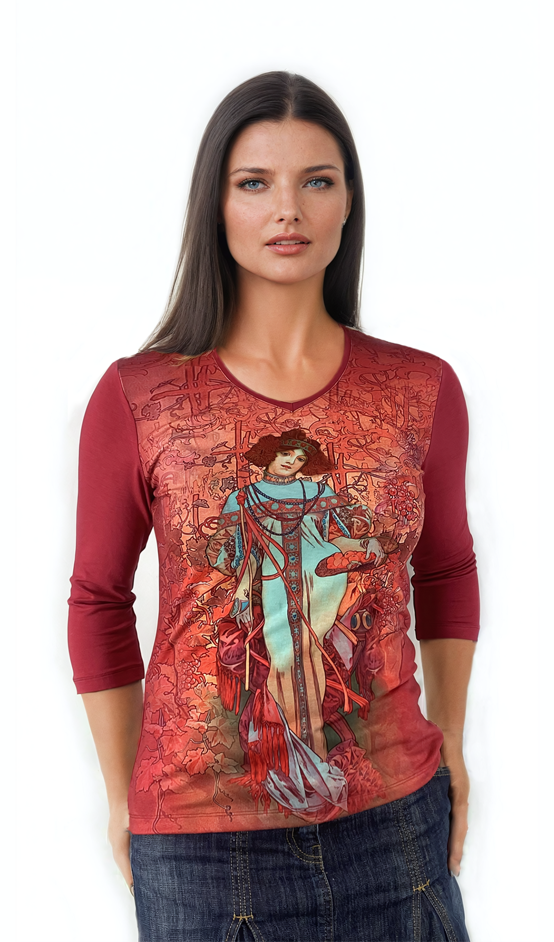 - Дамска блуза - тениска с 3/4 ръкав остро деколте добра основа за всякa визия.