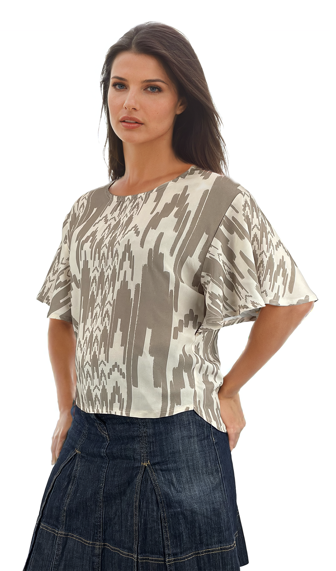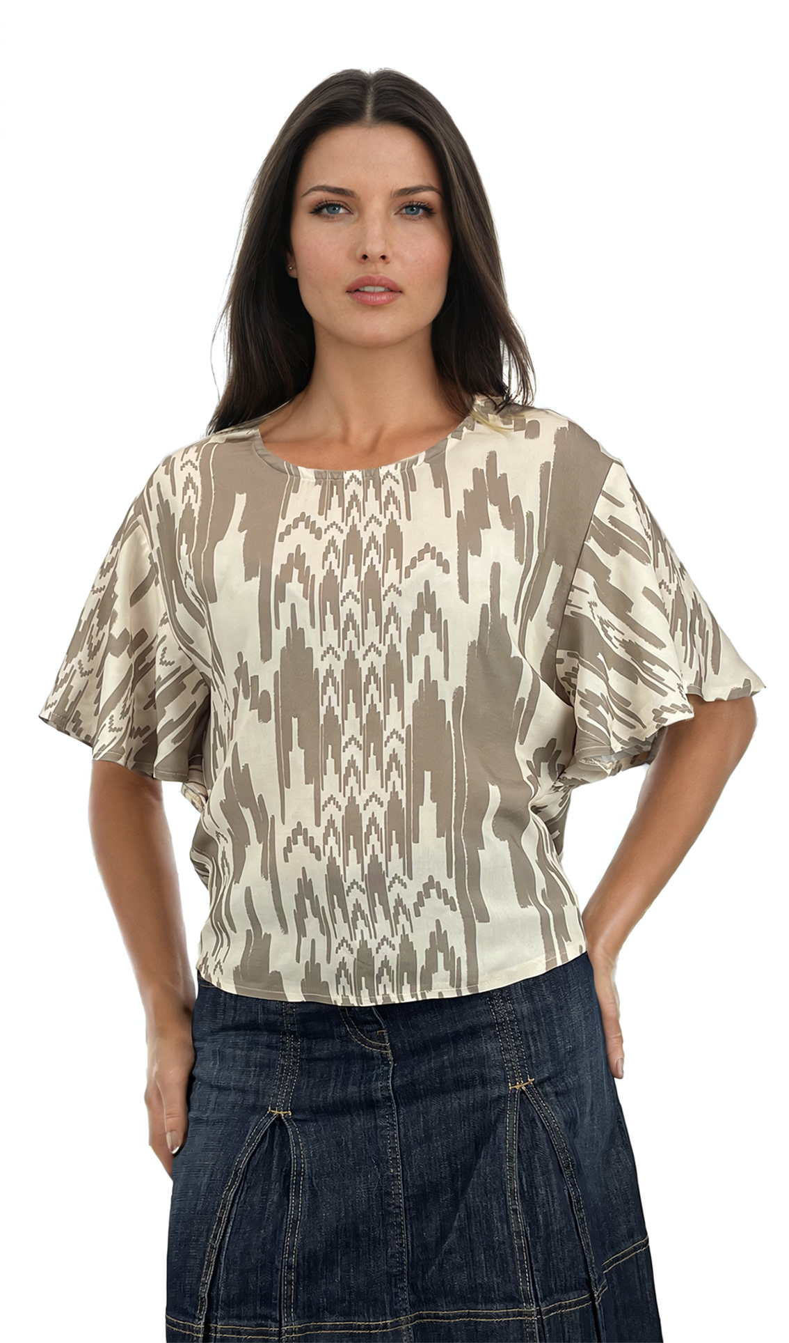 Дамска блуза къс ръкав обло деколте
