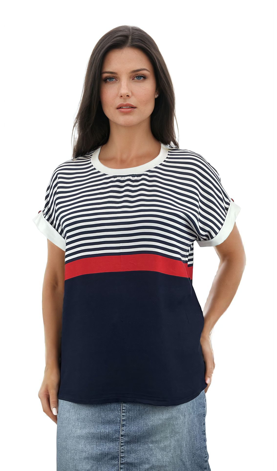 - Дамска блуза къс ръкав обло деколте , добра основа за всякa визия.