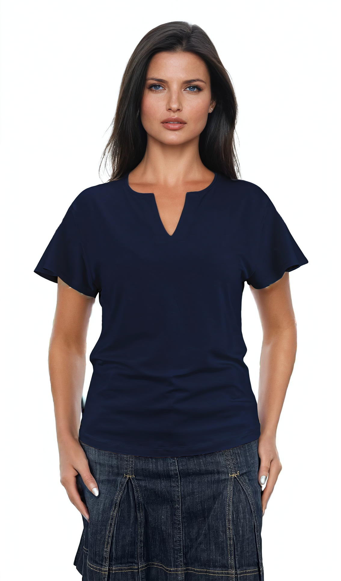 - Дамска блуза - тениска къс ръкав остро деколте , добра основа за всякa визия.
