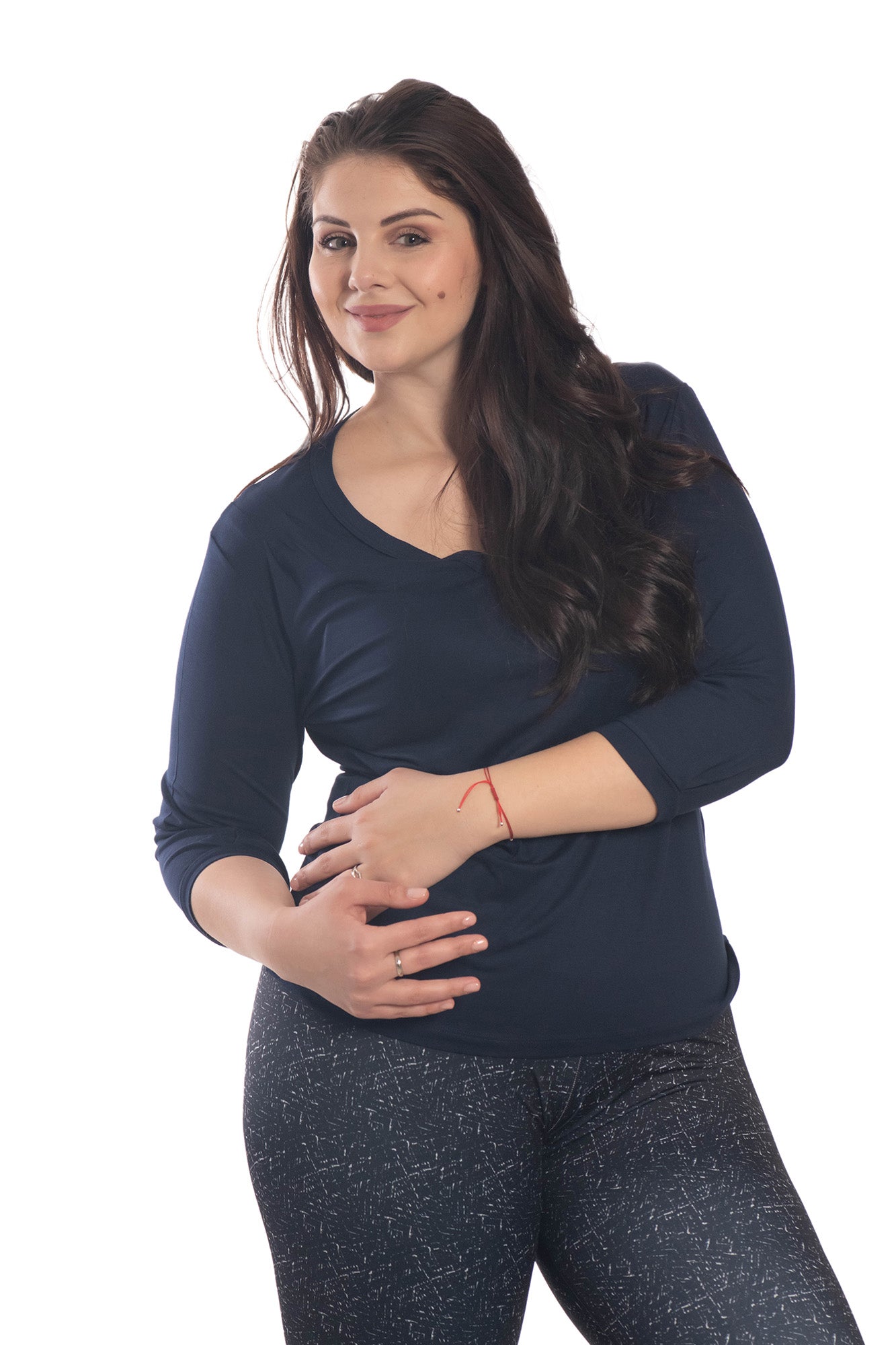 - Дамска блуза - тениска с 3/4 ръкав остро деколте с две декоративни копчета за карасота.