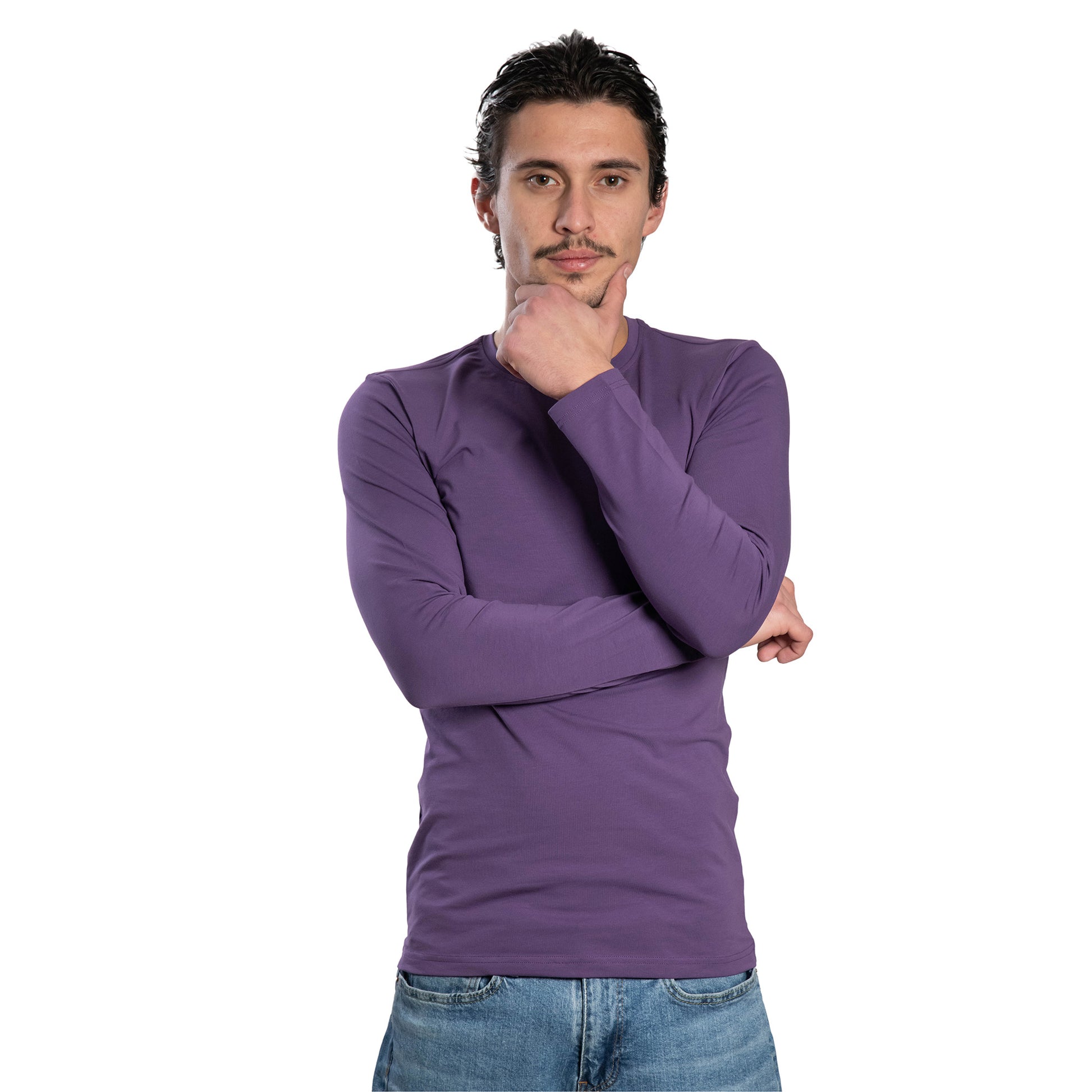 • Мъжка  тениска с дълъг ръкав обло деколте добра основа за всякa визия.
